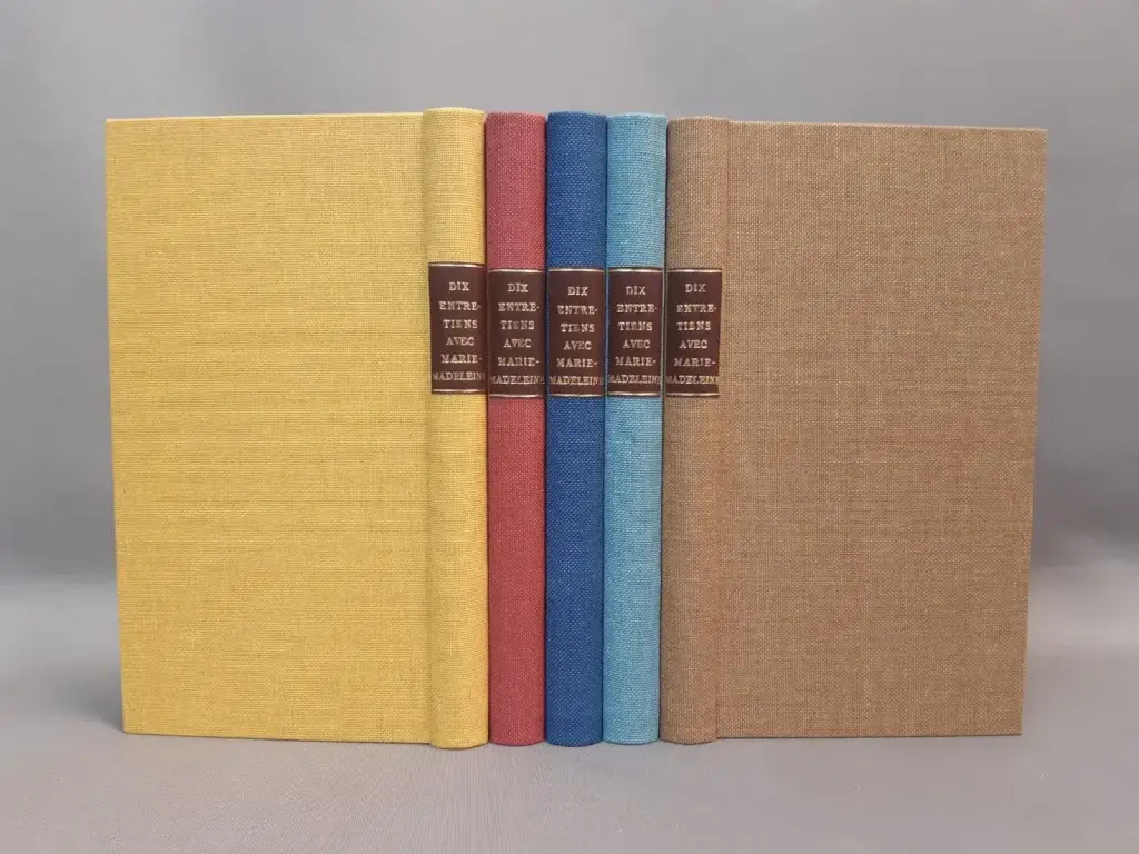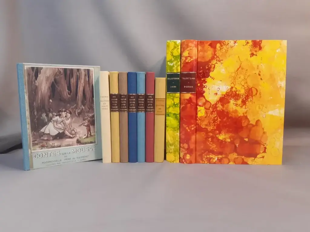 Reliures Bradel papier et en toile, choix des matières, sobriété des teintes et finitions soignées : des livres faits pour durer, et surtout pour être transmis.